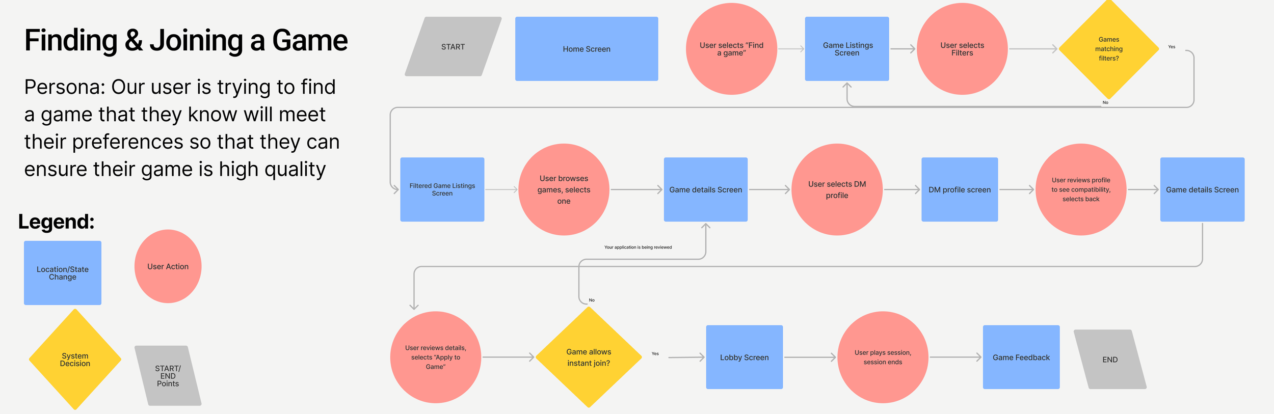 Based on this key epic, I created a task flow diagram, with the central story being that our user is trying to find a game that they know will meet their preferences so that they can ensure their game is high quality.